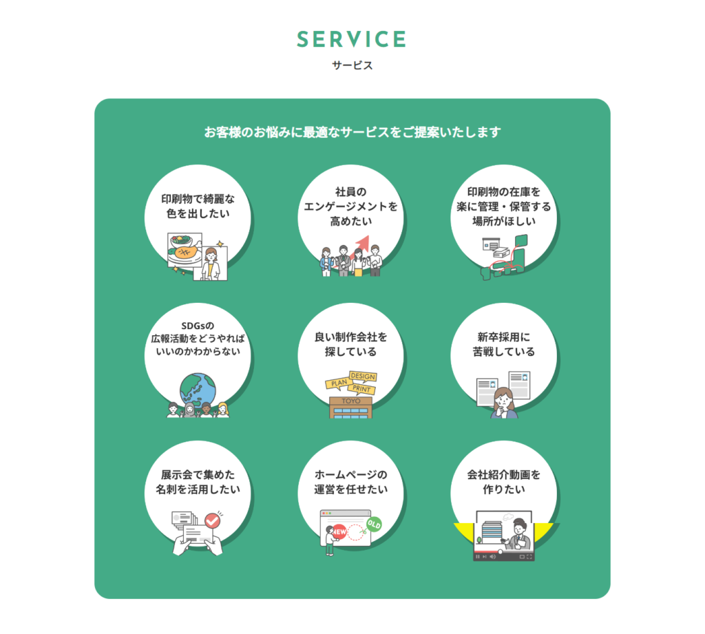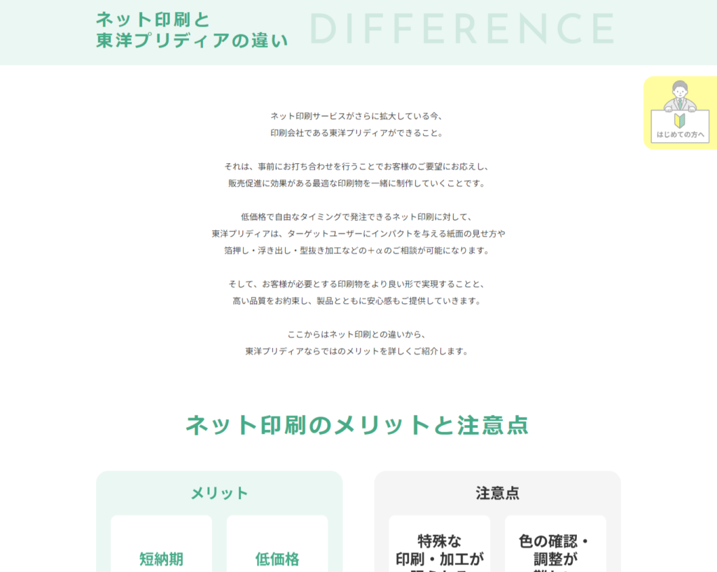 簡単にネットで印刷注文ができる時代だからこそ、印刷会社との違いを知ってもらうページになります。