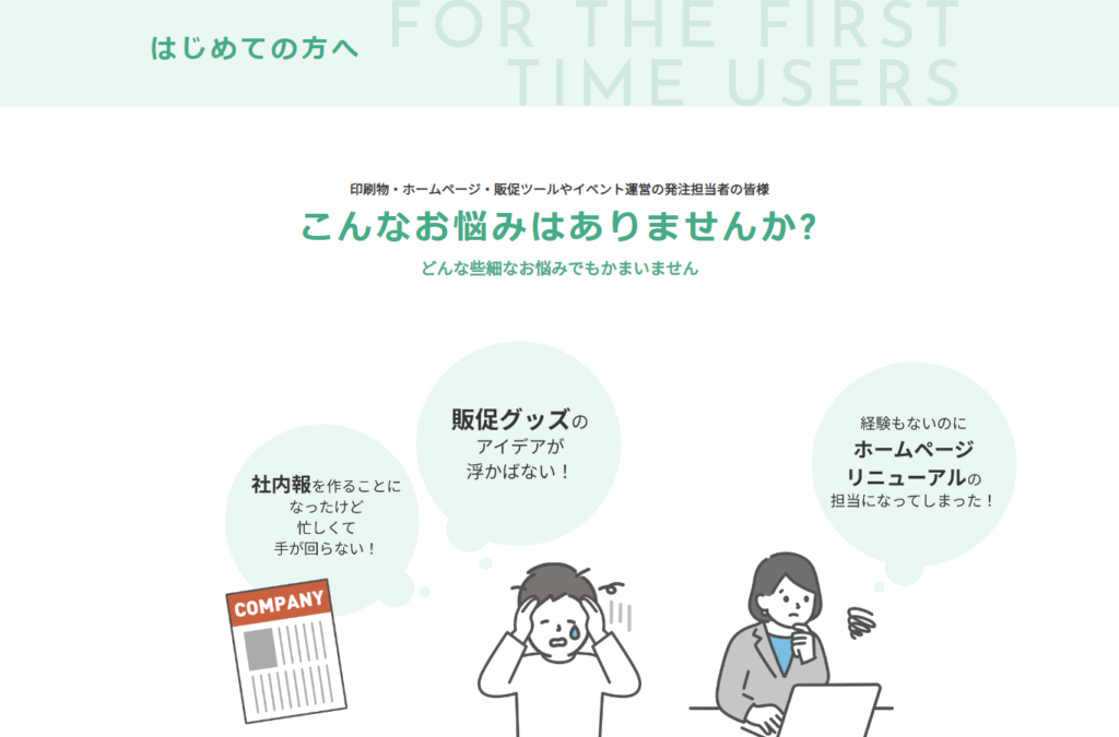 発注ご担当者様である皆さんに向けた、「はじめての方へ」ページになります。