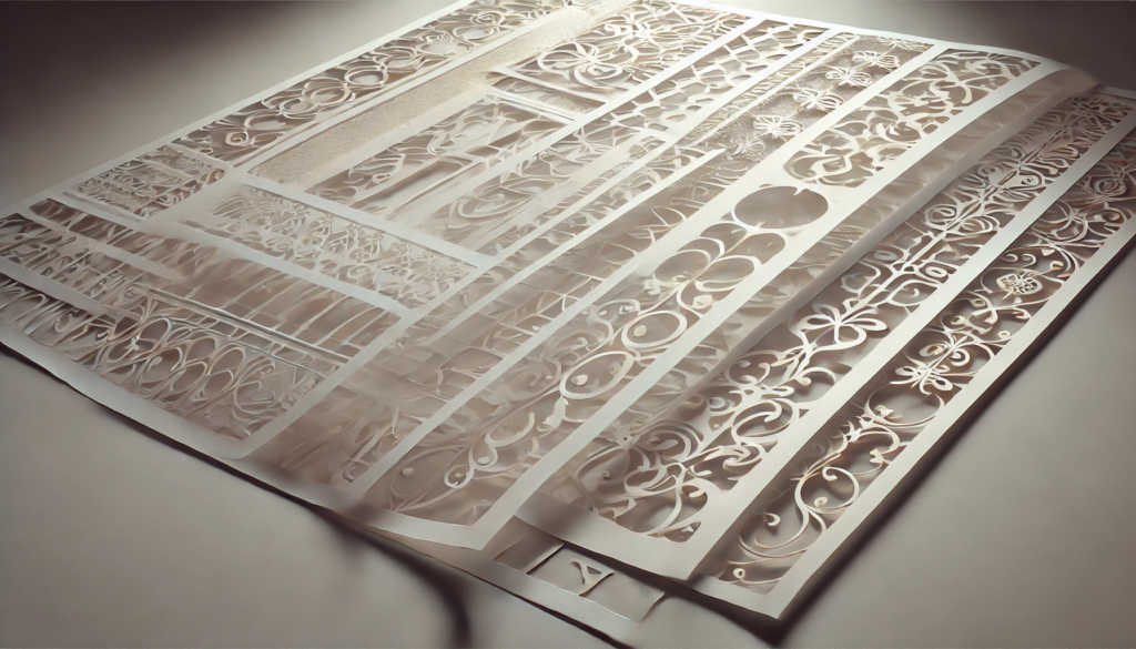 紙を様々な形状にカットする加工です。一般的には刀のついた抜き型を作り、用紙に当てることで型通りの形に仕上げる「トムソン加工」と呼ばれる方法が多く採用されています。クッキーの型抜きを想像してもらえると分かりやすいと思います。 面白い工夫やインパクトのある印刷物を作ることが可能になります。